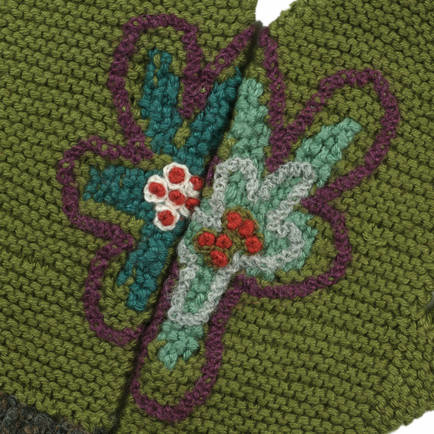 $84.00A smattering of crocheted little flowers adorn our MaryJane Scarf. Wear with any favorite scarf and gloves. Alpaca blend. Hand knit in Peru. Dry clean or hand wash.