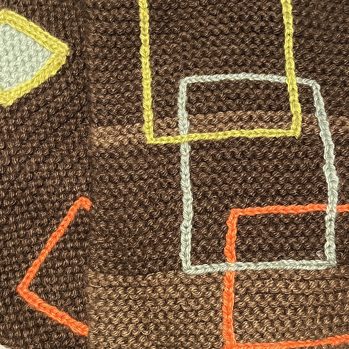 The world according to our wise kitty. Simple lines and soothing warm tones. Soft alpaca blend yarn hand knit and embroidered in a women’s coop in Peru. 5″ x 56″. Dry clean or gentle hand wash. 50% alpaca/50% acrylic.